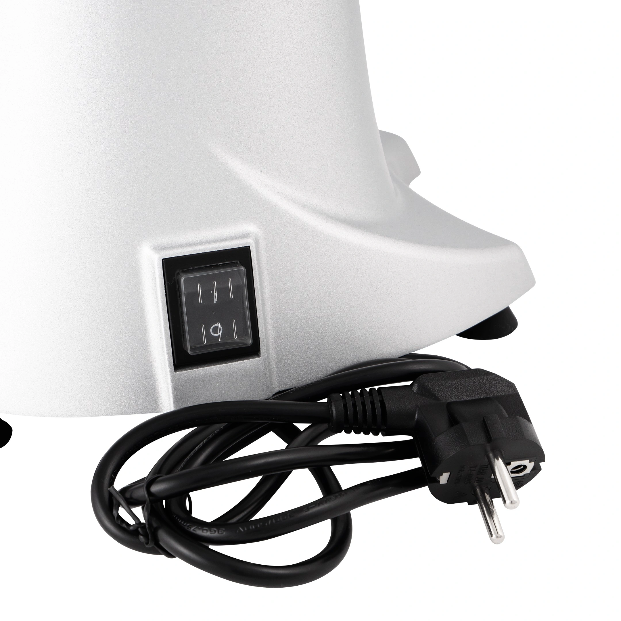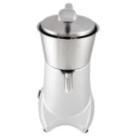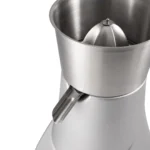 Соковыжималка работает по принципу пресса. Плод (цитрусовые) режется на две половинки, кладется на пресс, вследствие чего отжимается прозрачный сок с минимальным содержанием мякоти. Материал корпуса: нержавеющая сталь. В комплект поставки входят съемное сито и 2 съемные насадки.
