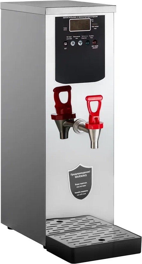 Кипятильник, проточный, непрерывного действия, электронное управление, объем резервуара 10 л, 1 разливной кран, производительность 35 л/ч, материал корпуса — нерж.сталь