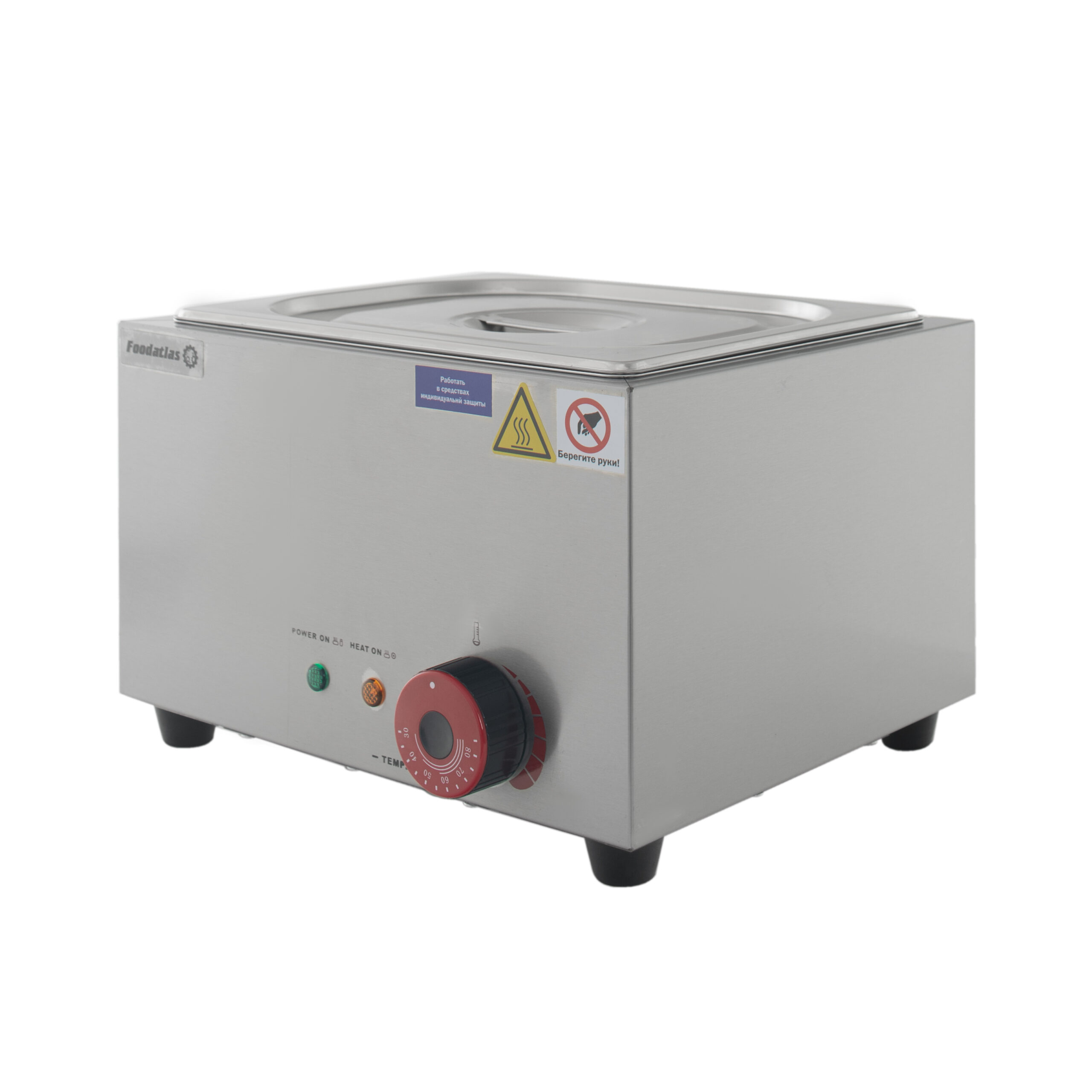 Предлагаемый вам мармит Foodatlas EH-1V имеет 1 бункер для первых и вторых блюд, соусов и прочих пищевых ингредиентов. По современным требованиям для изготовления мармитов применяется только коррозионностойкий металл. В данном случае речь идёт о нержавейке стали марки 460. Толщина металла составляет 0,8 мм, что обеспечивает исключительную механическую прочность и долговечность изделия.