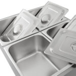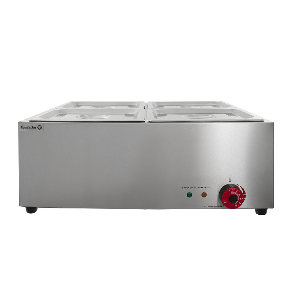 Предлагаемый вам мармит Foodatlas EH-4 имеет 4 бункера для первых и вторых блюд, соусов и прочих пищевых ингредиентов. По современным требованиям для изготовления мармитов применяется только коррозионностойкий металл. В данном случае речь идёт о нержавейке стали марки 460. Толщина металла составляет 0,8