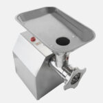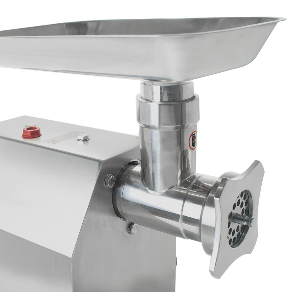 Прибор оснащен мощным двигателем, способным выдержать ежедневные нагрузки на предприятиях общественного питания с большой проходимостью. При сравнительно небольших габаритах: 385x240x415 (Д х Ш х В, мм), мясорубка может обработать до 150 кг продукта в час.