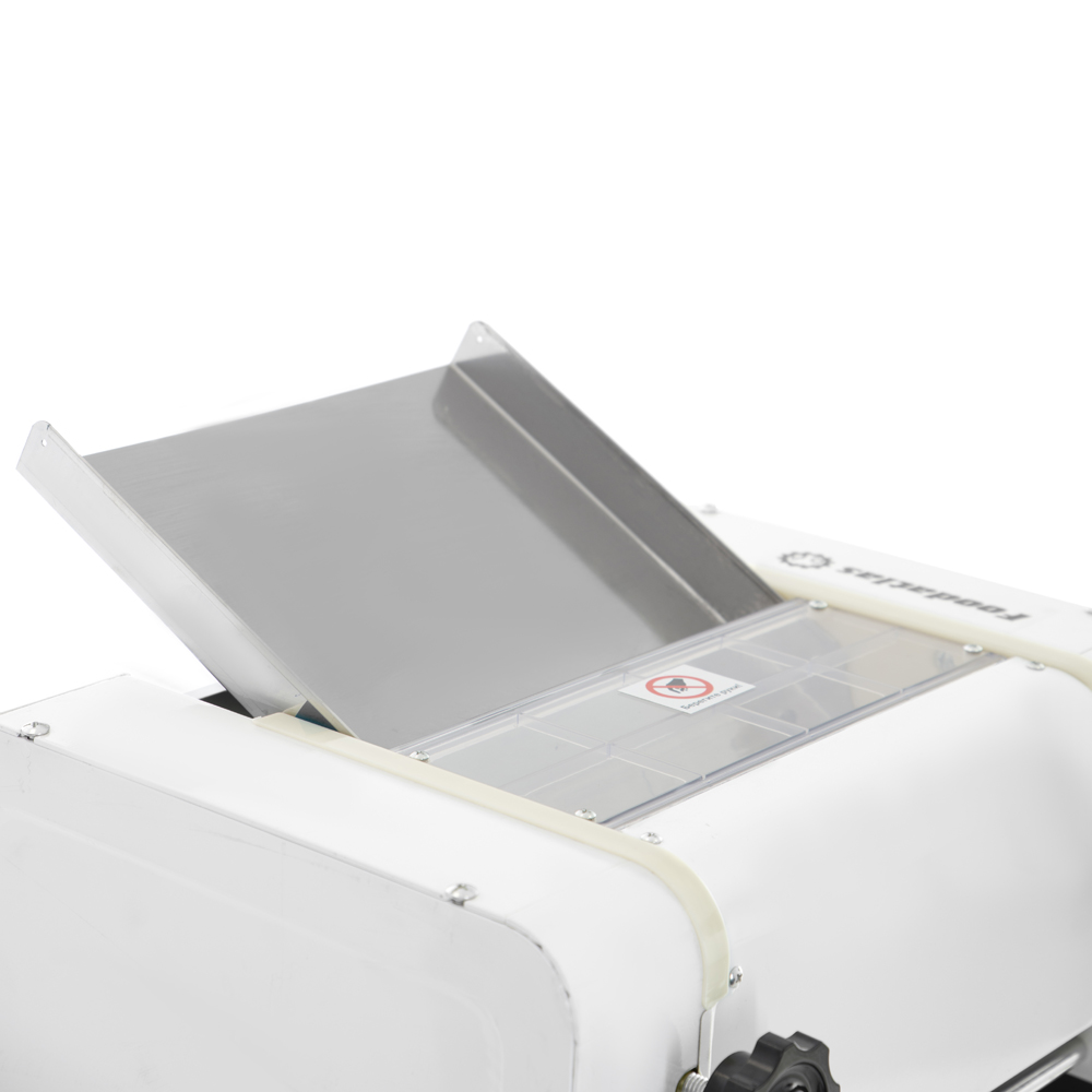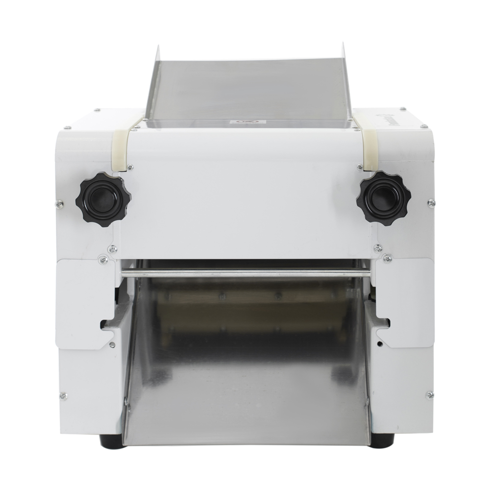 На раскаточных валах предусмотрены скребки, которые позволяют своевременно очищать рабочую поверхность. Для изготовления внешних боковых панелей используется окрашенный толстостенный металл. Лотки выполнены из нержавеющей стали. В стандартную комплектацию ножи не входят.
