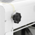 Тестораскатка-лапшерезка FA-300RT представляет собой сборно-сварную систему с боковыми плитами. С боковых сторон к системе закреплены плиты, соединенные с верхним и нижним валами. Зазор между ними от 1-14 мм устанавливается в зависимости от характеристик продукта, с которым будет осуществляться работа.